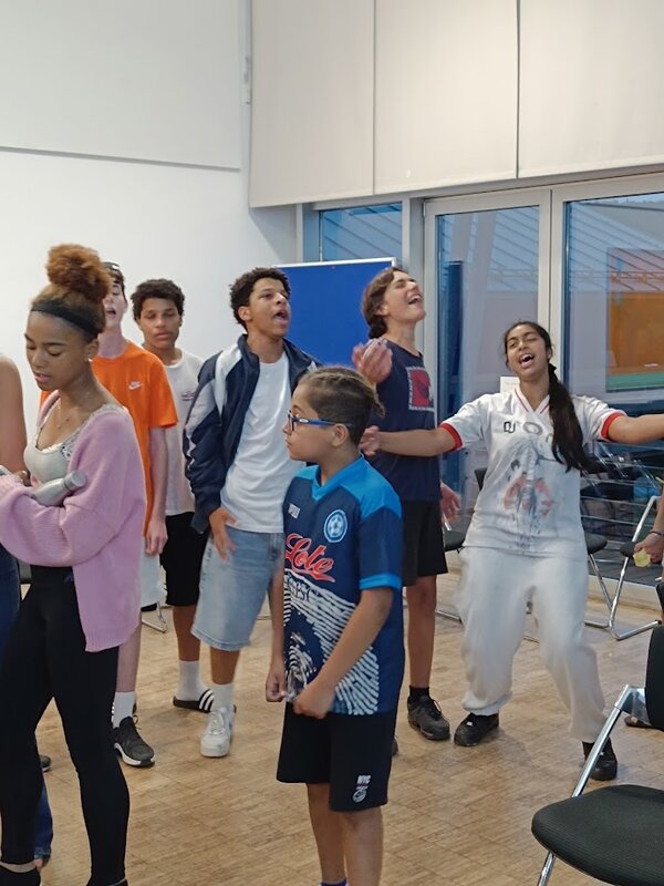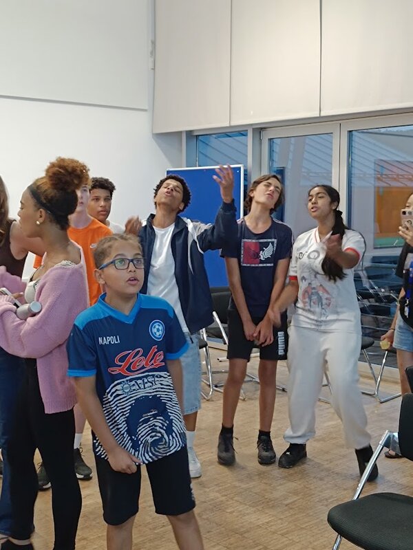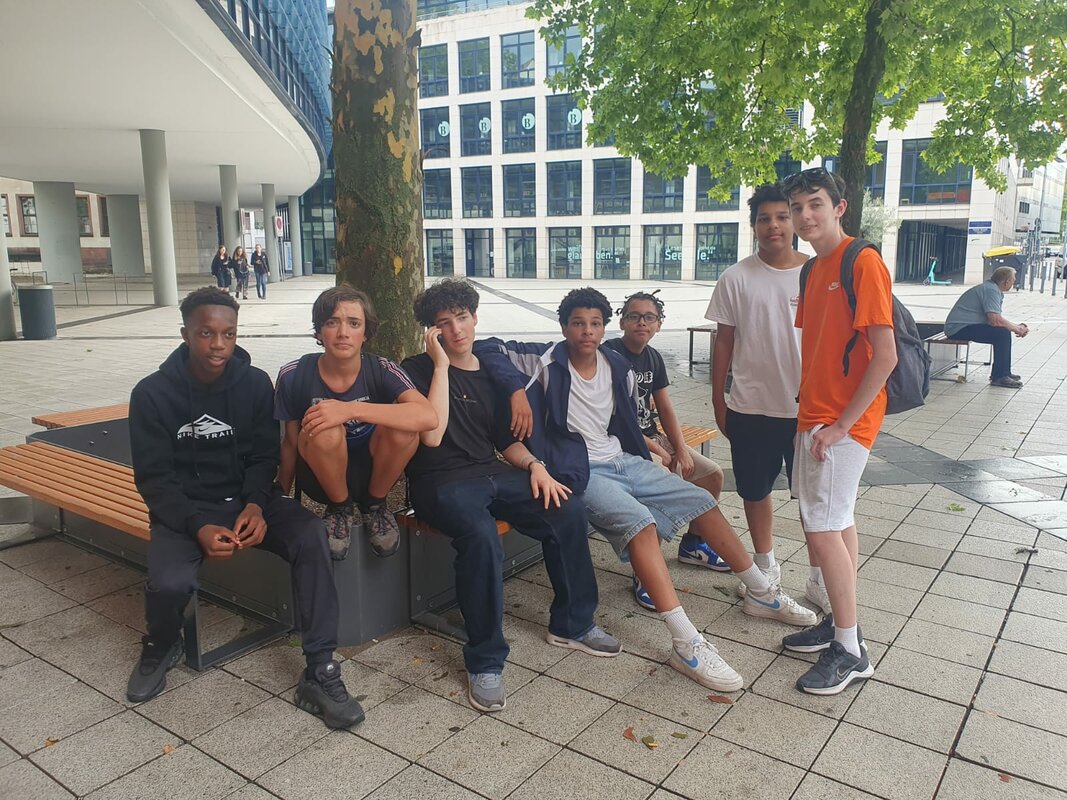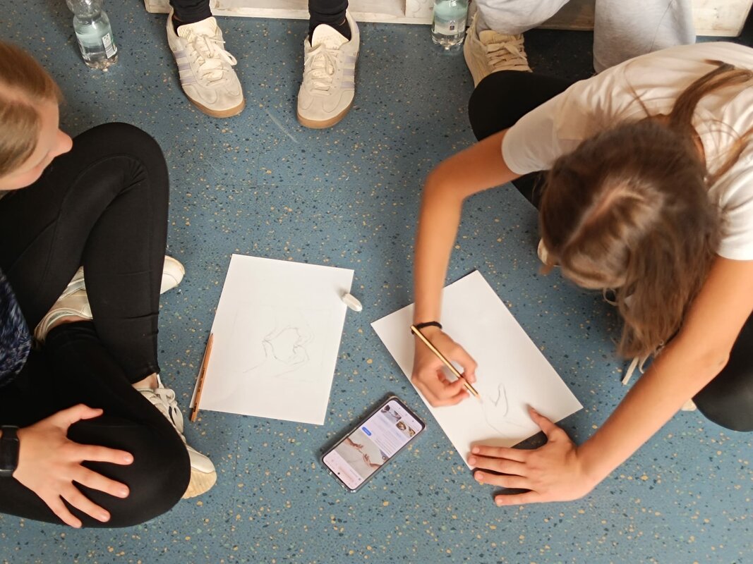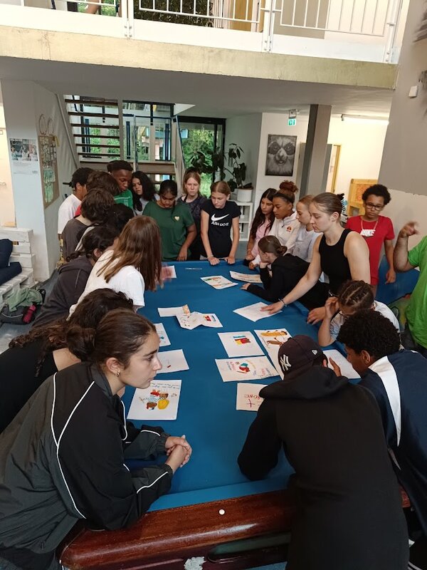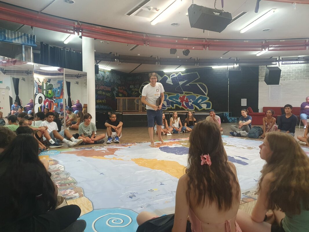 Ein Highlight der Woche war der Graffiti-Workshop im Jugendzentrum Folsterhöhe. Unter dem Motto „deutsch-französische Freundschaft“ entwarfen die Jugendlichen zunächst eigene Skizzen, bevor sie gemeinsam ein großes Bild erschufen: Jede*r gestaltete eine einzelne Leinwand, die später zu einem Gesamtwerk zusammengesetzt wurden. Die Botschaft: Das Bild ist erst vollständig, wenn wir alle wieder zusammenkommen.