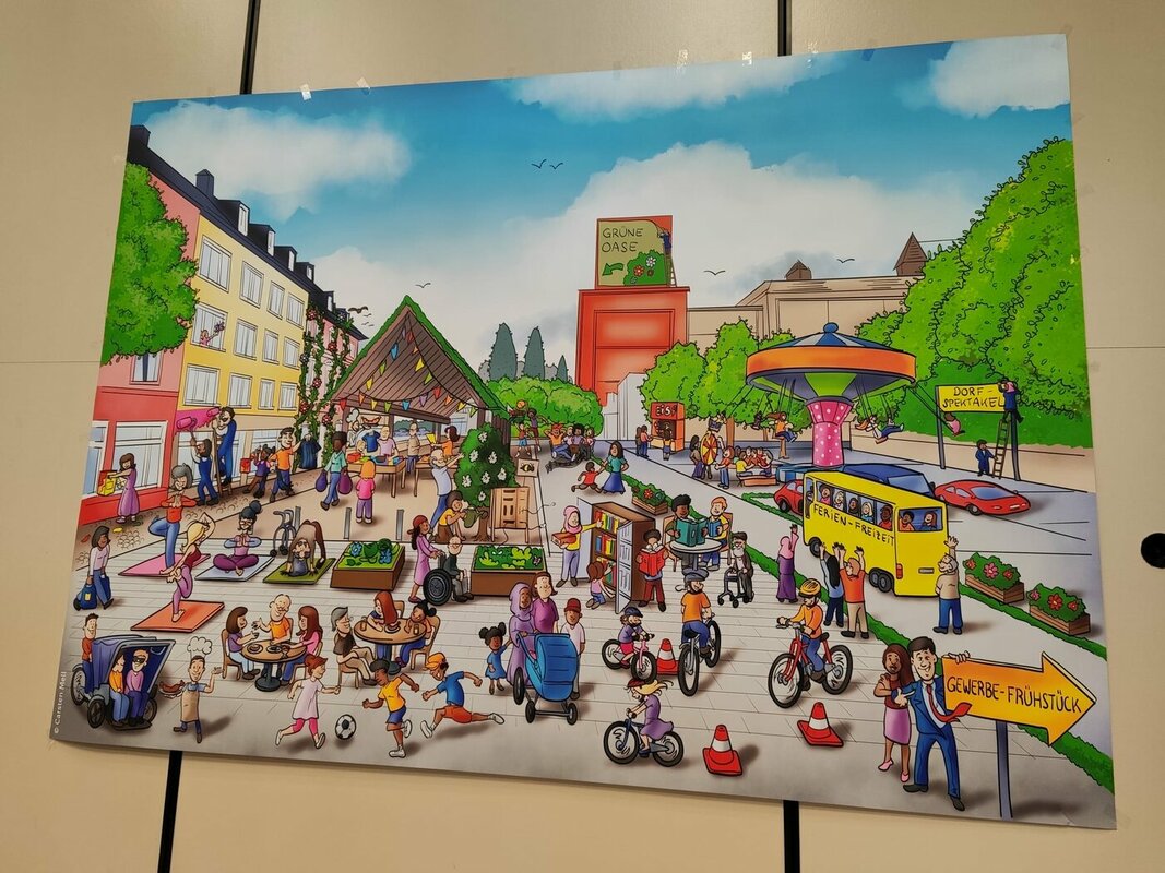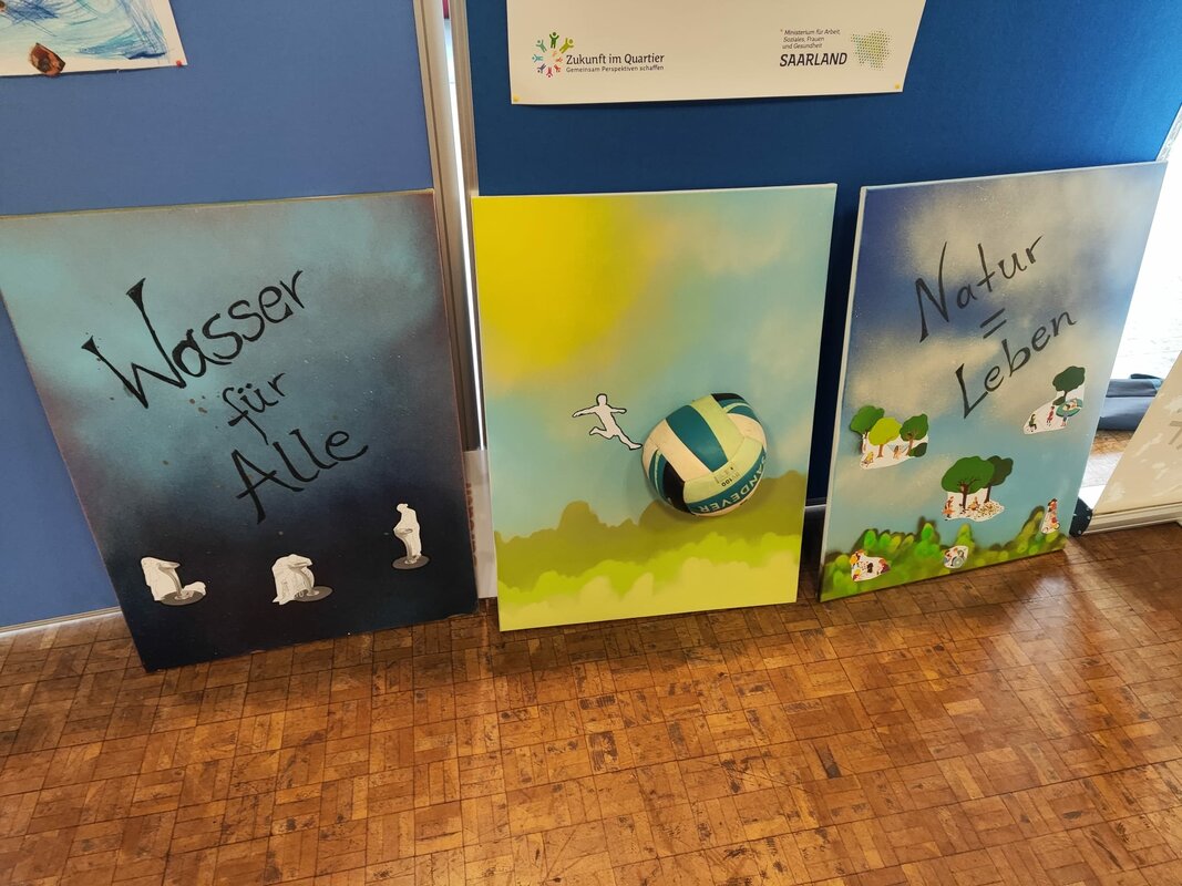 Wenn es um die Zukunft geht, fragt man am besten die Personen, die sie erleben werden, die Kinder und Jugendlichen. Bei der Vernissage im Bürgerhaus Burbach haben die Jugendlichen des Jugendzentrums Burbach ihre selbstgestalteten Graffiti auf Leinwänden ausgestellt, auf denen sie ihre Wünsche und Ideen für ihren Stadtteil dargestellt haben.
