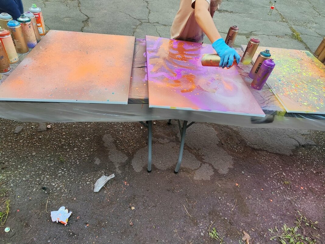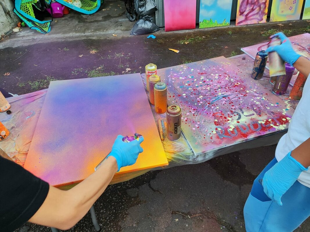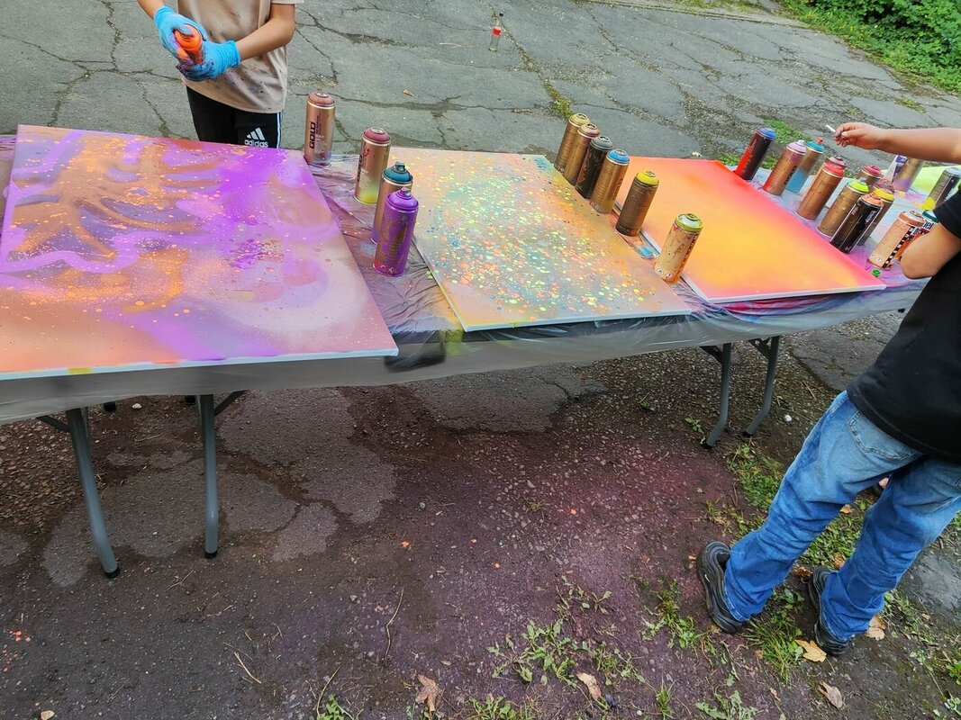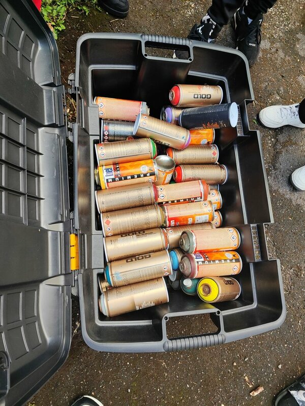 Die Graffitis wurden im Vorfeld in einem Workshop im Juz Burbach angefertigt. An dieser Stelle vielen Dank an Pascal Herth, der die Jugendlichen super durch den Workshop begleitet hat.